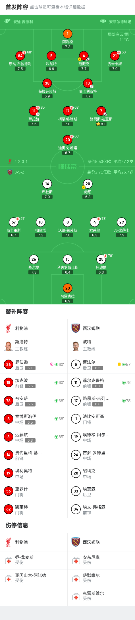进入下半场,比赛节奏持续激烈,双方都有威胁性进攻。第86分钟,万-比萨卡传中,范戴克解围时不慎将球打在罗伯逊身上弹进自家球门,西汉姆联扳平比分,场面紧张刺激。但在关键时刻,范戴克接到麦卡利斯特的助攻,完成破门,再次领先比分,让球迷们沸腾。